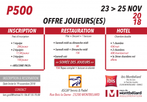 La première édition du TROPHEE PADEL PAYS DE MONTBELIARD aura lieu du 23 au 25 Novembre 2018 L’ASCAP…