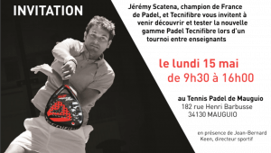 Jérémy Scatena, champion de France et Technifibre vous invitent à venir découvrir et tester la nouvelle gamme Padel…