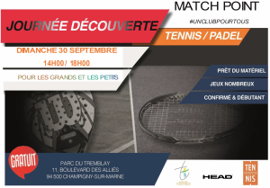 Le Parc du Tremblay propose sa seconde Journée padel découverte de 14h00 à 18h00 le dimanche 30 septembre…