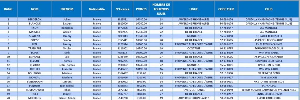 Quels sont les 20 meilleurs joueurs français de padel en 2019 ? Une saison 2019 très riche avec une croissance du nombre de joueurs de padel, toujours plus de clubs et de tournois de padel et évidemment l’apparition du FFT PADEL TOUR, ce fameux circuit élite de padel.