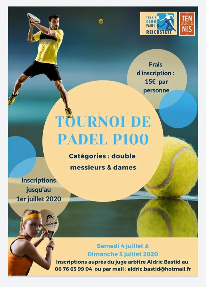 - 4 & 5 Juillet : P100 Femmes et Hommes (ouvert au mixte) au Tennis Club Padel Reichstett