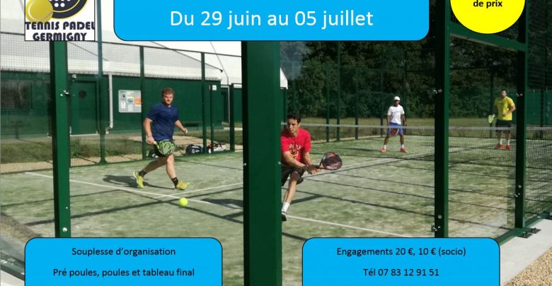 Le club de Padel de Germigny organise un P250 messieurs du 29 juin au 5 juillet.