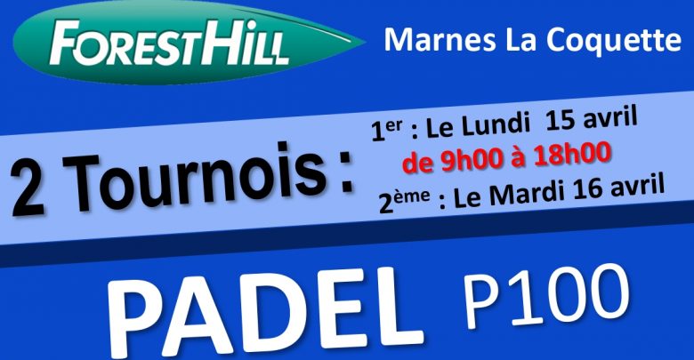 2 Tournois de PADEL P100 au Forest Hill Marnes La Coquette auront lieu :