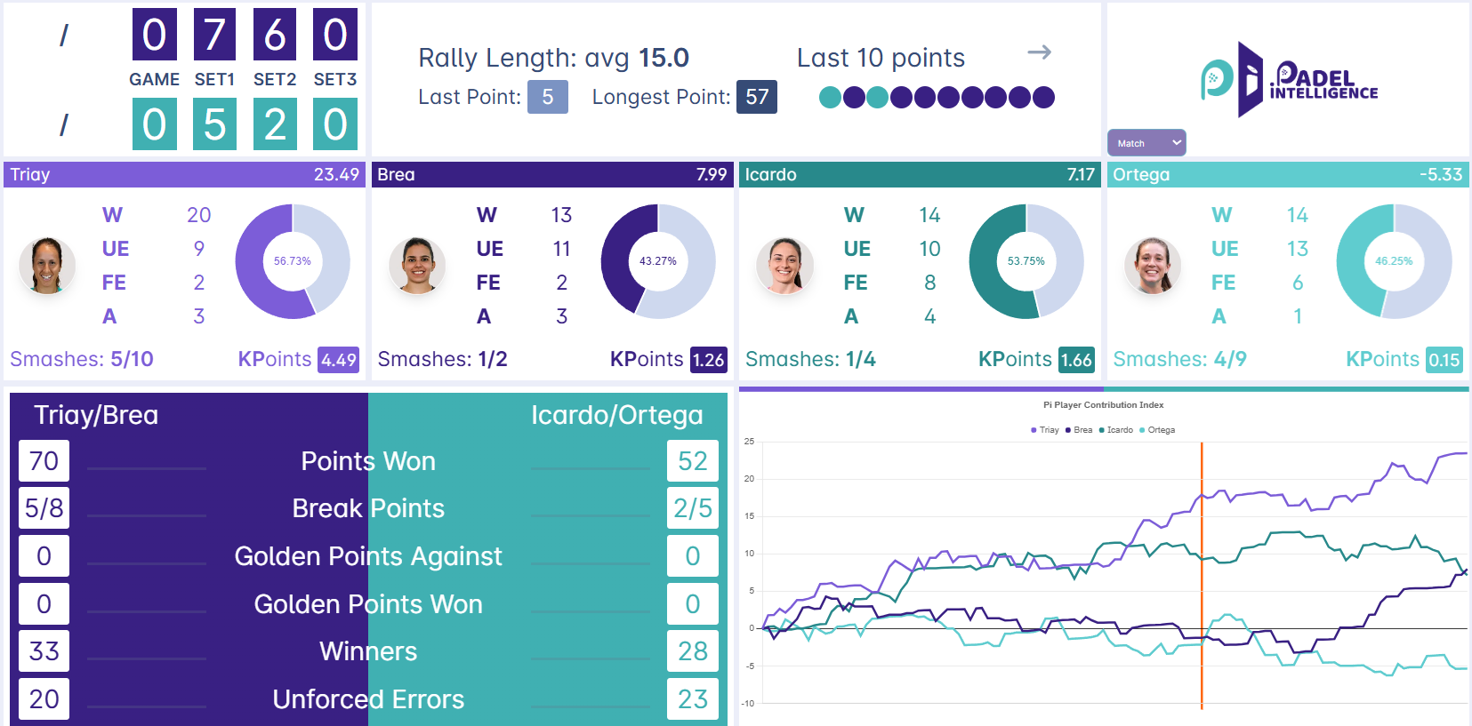 Portée par une Gemma Triay des grands jours, amortis, smashs et intensité physique impressionnante, la paire favorite a pris le contrôle du match dans le second set. Delfi Brea, plus incisive dans sa diagonale, a parfaitement complété le travail. En face, Ortega a multiplié les fautes directes, empêchant sa paire de rivaliser. Résultat : 6/2 pour Triay / Brea, qui n’ont laissé aucune chance.