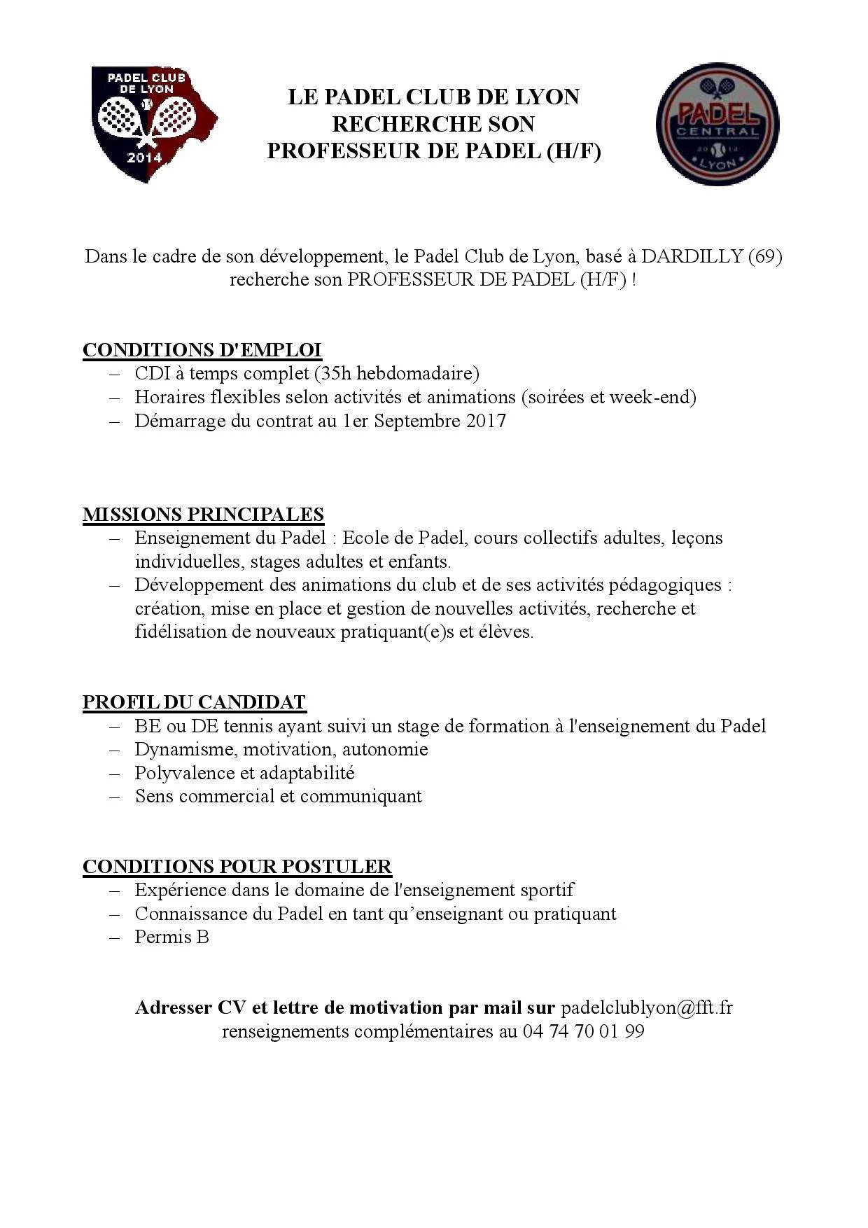 Vous trouverez l’annonce ci-dessous ainsi que les informations relatives à l’embauche. Envoyez dès à présent votre candidature à Padelclublyon@fft.fr