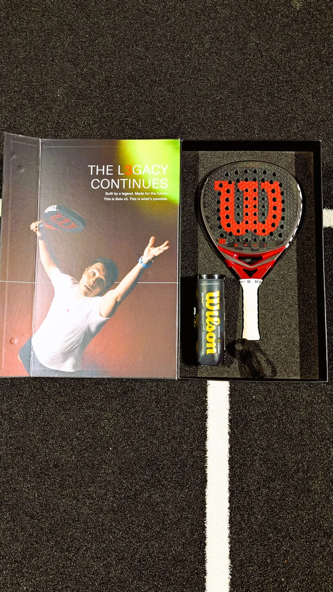 Dès l’ouverture du colis, la pala apparaît dans un élégant coffret — une édition réservée à certains VIP, merci Wilson ! — rehaussé d’une citation en anglais au ton solennel : « No more opponents to overcome. No more championships to win » (« Il n’y a plus d’obstacles à surmonter. Plus de championnats à gagner »).