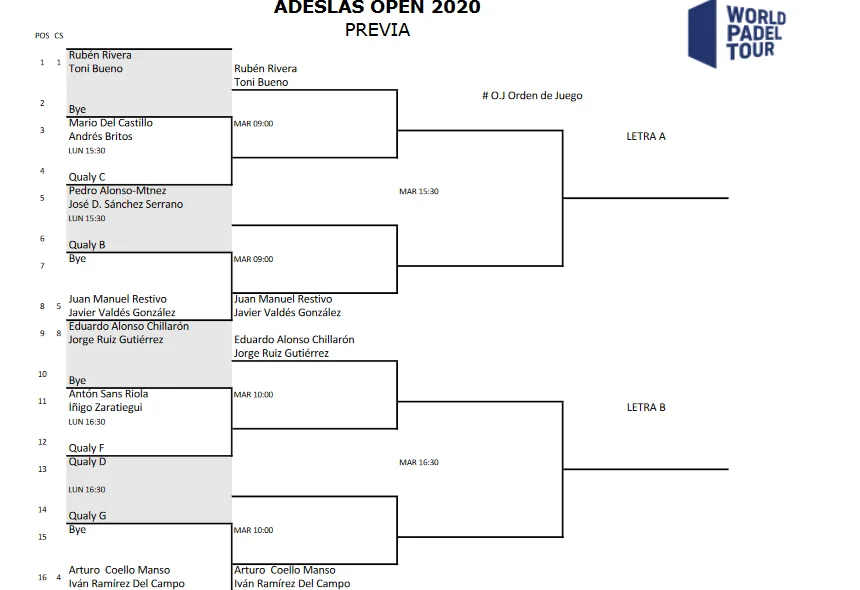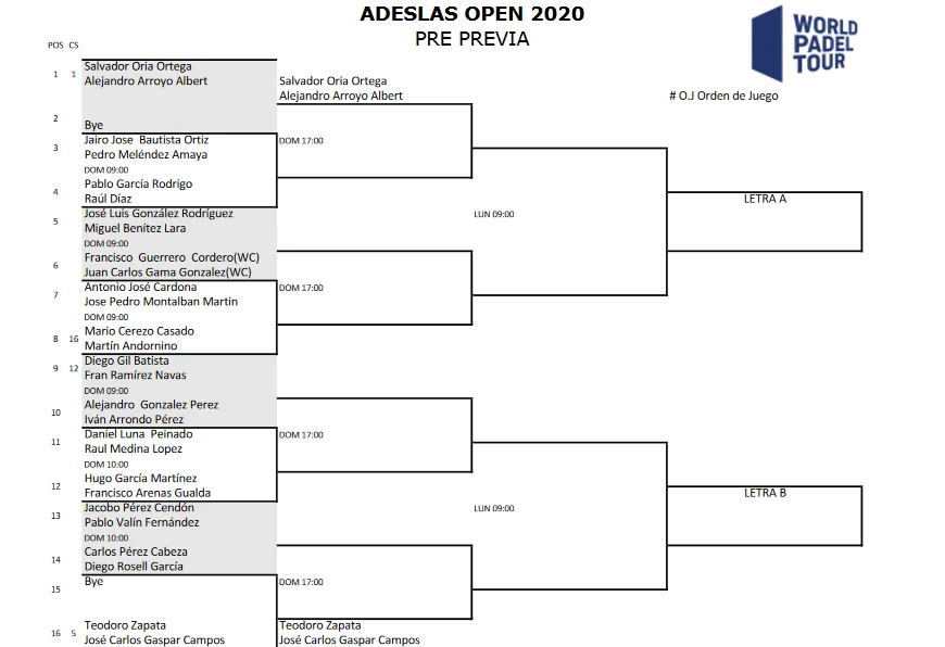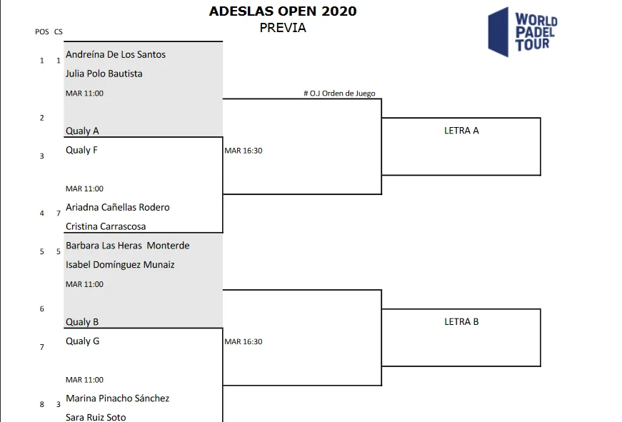 Découvrez tous les tableaux hommes et dames du troisième tournoi à huis clos à la Madrid Arena du World Padel Tour : l’Adeslas Open.