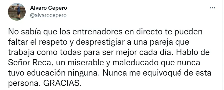 En effet ce weekend nous avons pu apercevoir un tweet lancé tel un direct du droit par Alvaro Cepero à destination de Gaby Reca.