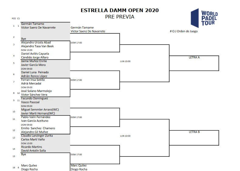 Découvrez le tableau des preprevias hommes du tournoi de reprise du World Padel Tour : le Estrella Damm Open, qui aura lieu à Madrid.