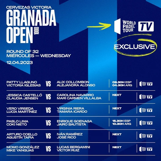 On suivra également les débuts des grands favoris du tournoi, Arturo Coello et Agustin Tapia. Pourront-ils faire la passe de 5 en Andalousie ? Pour cela il va falloir d’abord écarter Ivan Ramirez et José Rico ce mercredi !