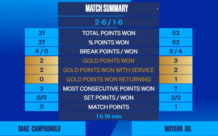 Cette paire, c’est celle composée de Xisco Gil et Ramiro Moyano. Le duo hispano-argentin s’est montré très à son avantage dans cette rencontre, au cours duquel il aura remporté près des deux-tiers des points !
