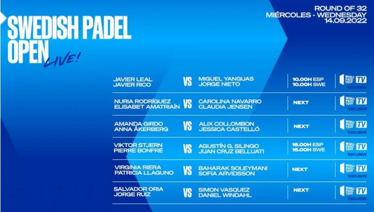 Suivez les seizièmes de finale du World Padel Tour Swedish Padel Open en direct ce mercredi.